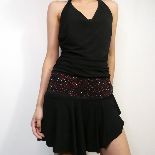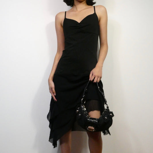 Black 00's Ruby Fox Rhinestone Ruched Midi Dress - Size S/M