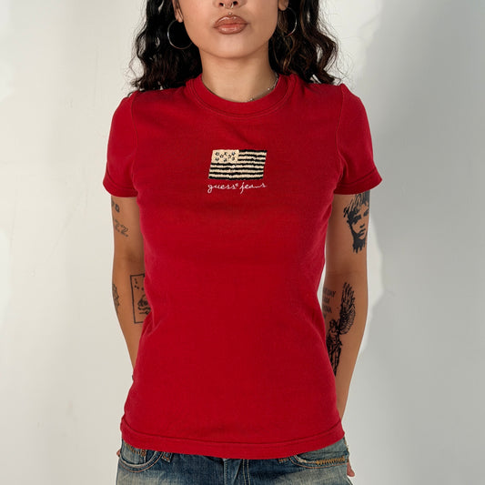 Red Sequin Flag Guess Jeans Babytee - Size XS/S