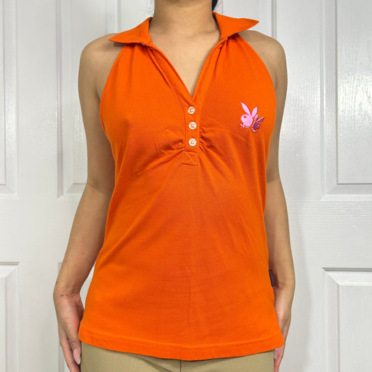 Orange Playboy Collar Tank Top - Size L/XL