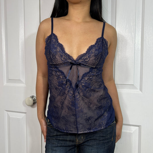 Aqua Sheer Floral Lace Camisole - Size S/M