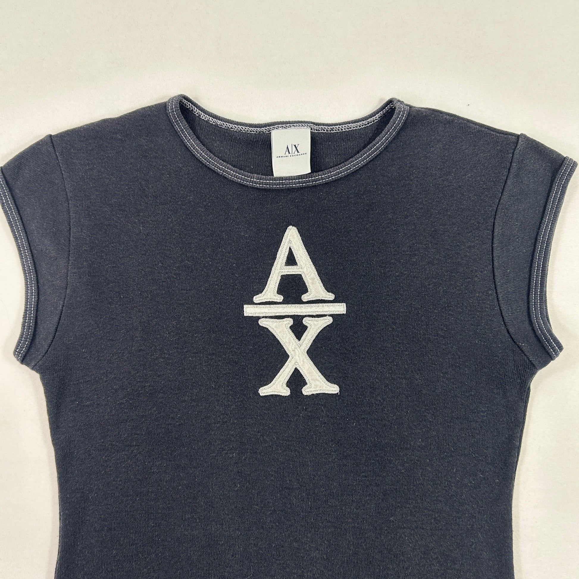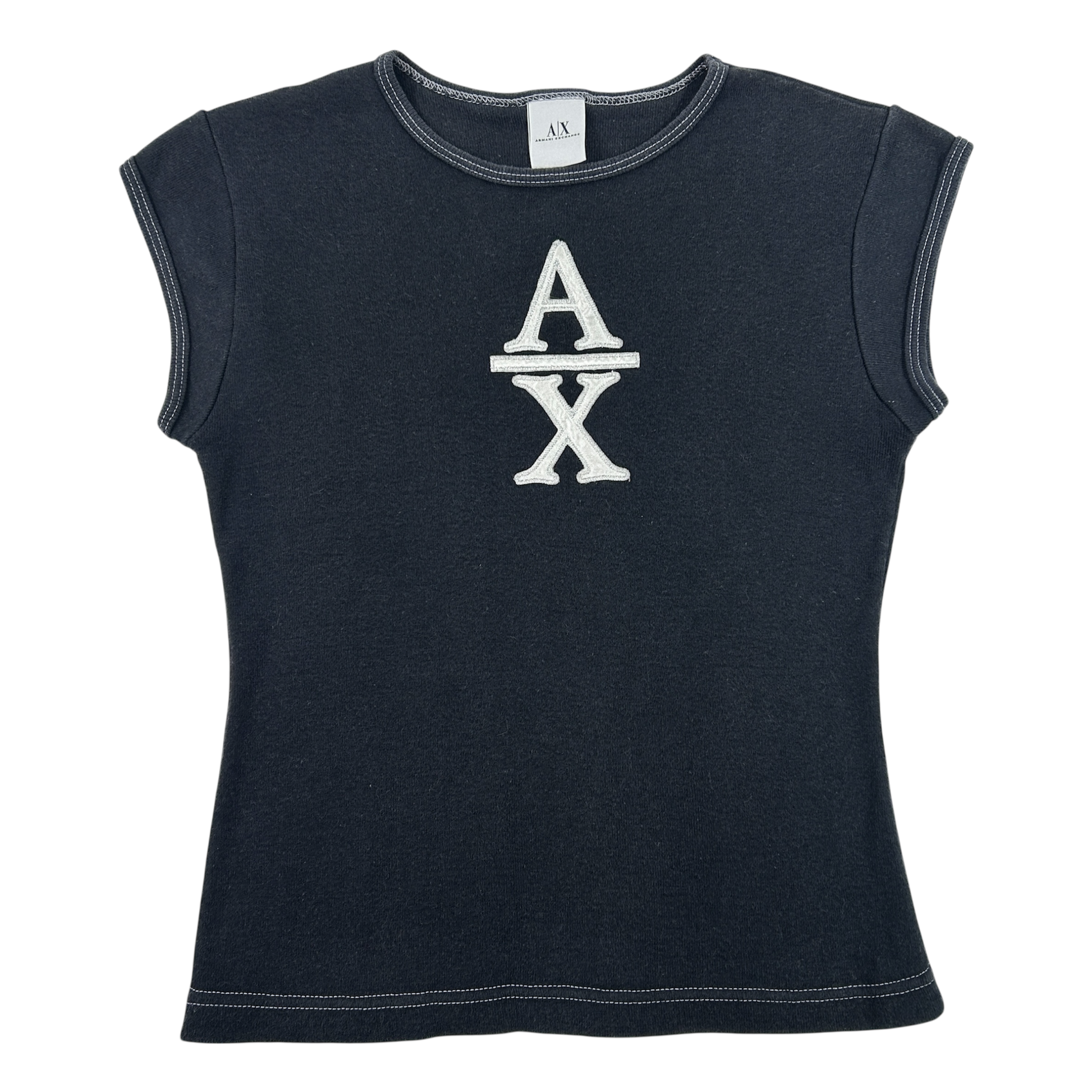Insane black & white Armani Exchange babytee, featuring cropped sleeves. Made in USA