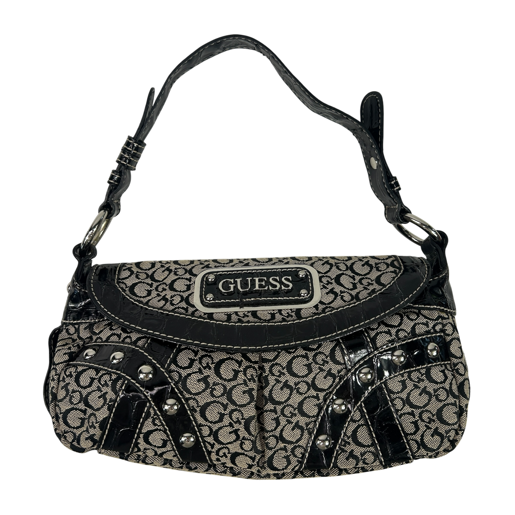 Vintage monogram Guess shoulder bag with silver hardware. Faux croc leather with a magnetic clasp to close the bag. Signs of usage but otherwise great condition.