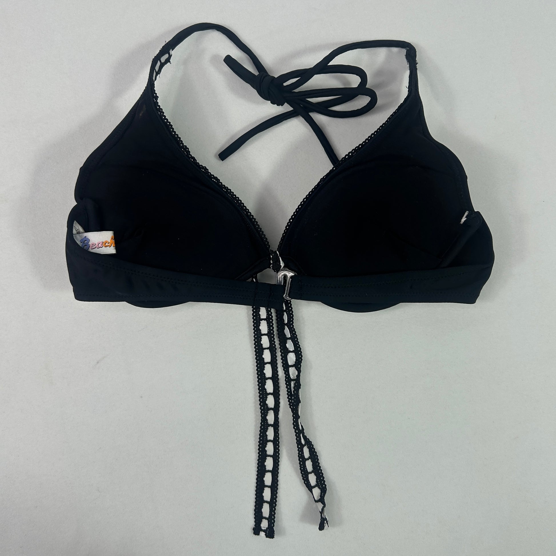Bikini top featuring halter neck. Bikini is padded, will give you a push up. Tie neck and clipped back.