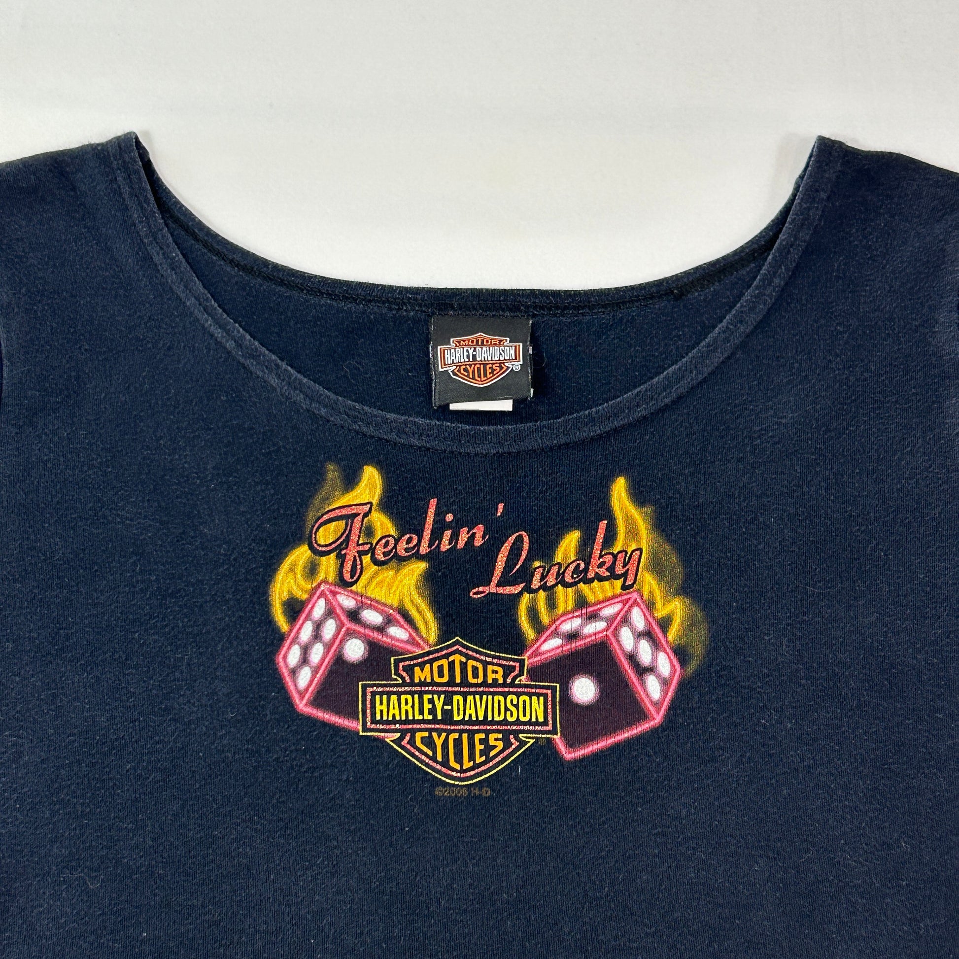 Black Harley Davidson scoop neck top with the most insane dice graphic featuring the iconic Harley logo front & back