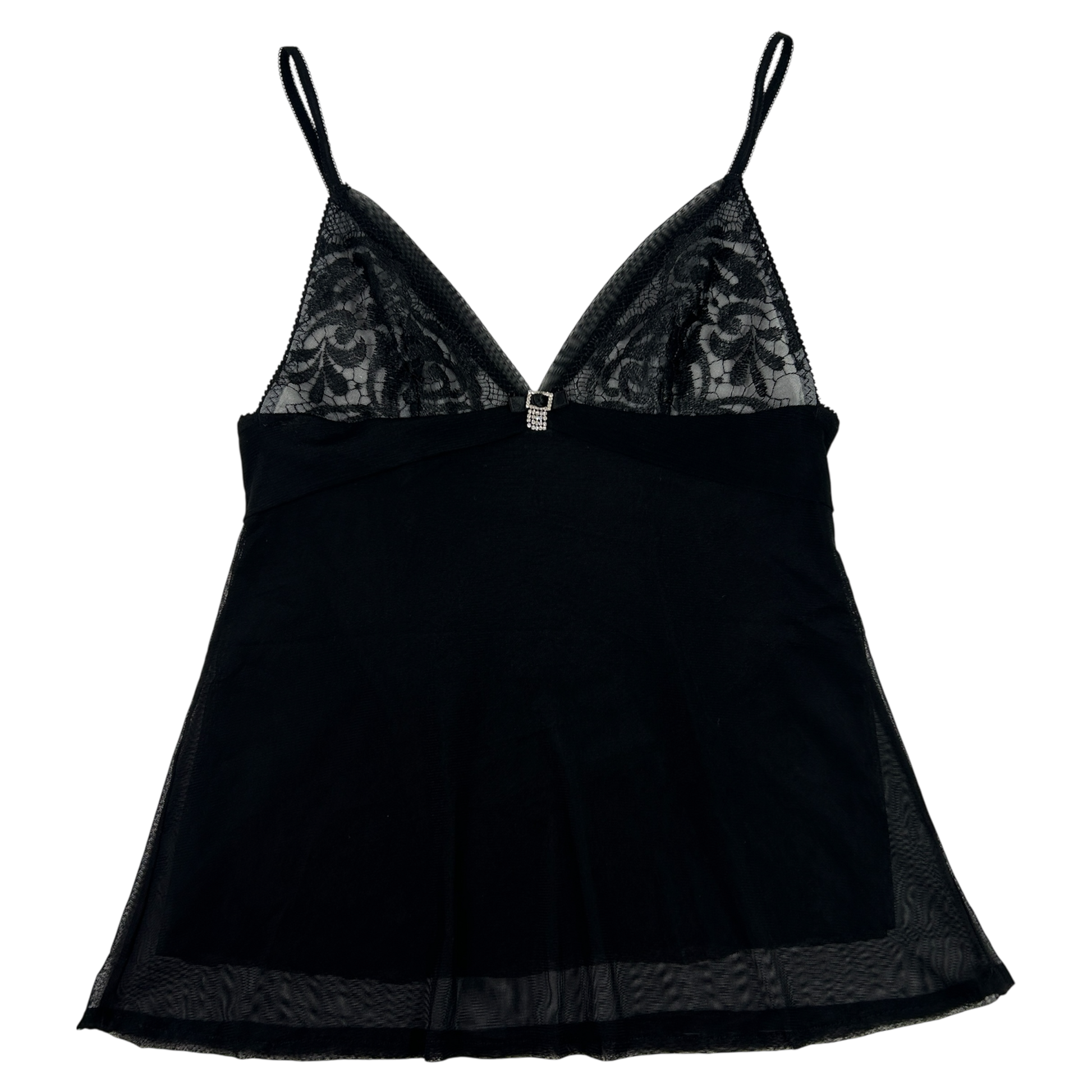Gorgeous black lace camisole. Featuring double lined, adjustable straps & diamond details.