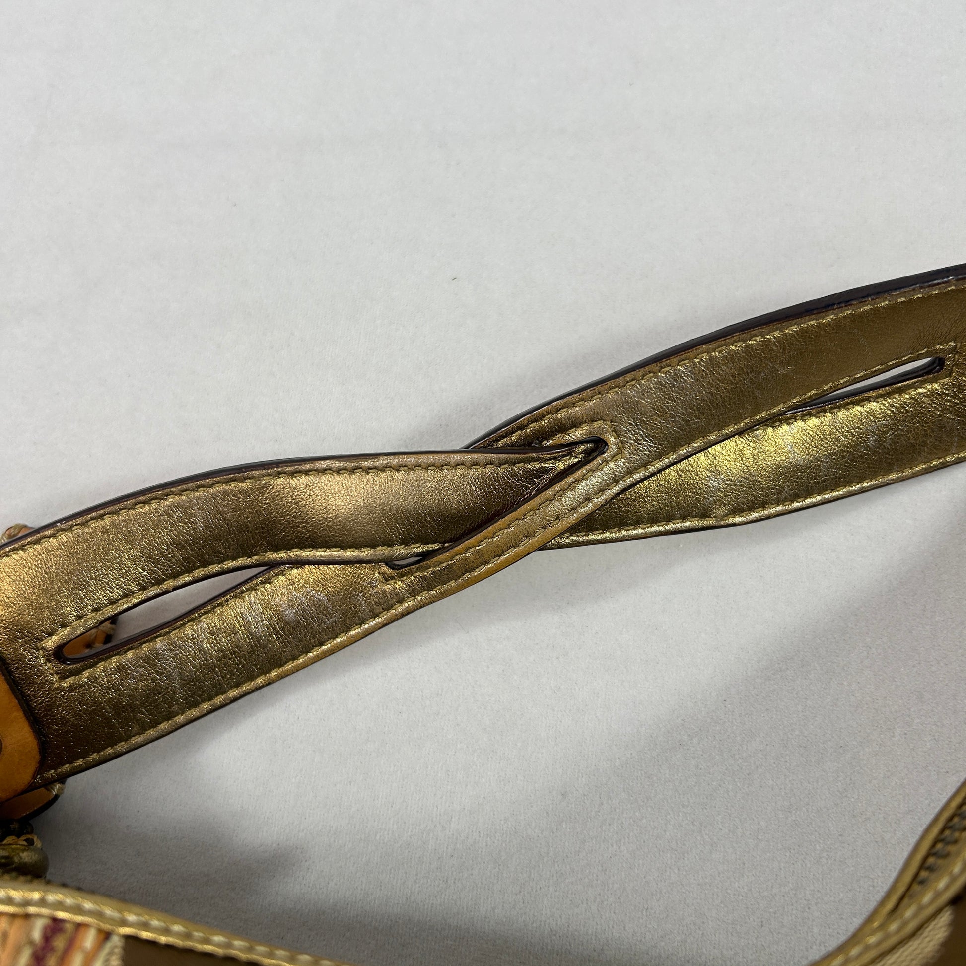 INSANE hobo style Coach shoulder bag with a crescent shape featuring Gold hardware & distinctive leather panels. Definitely a collector item