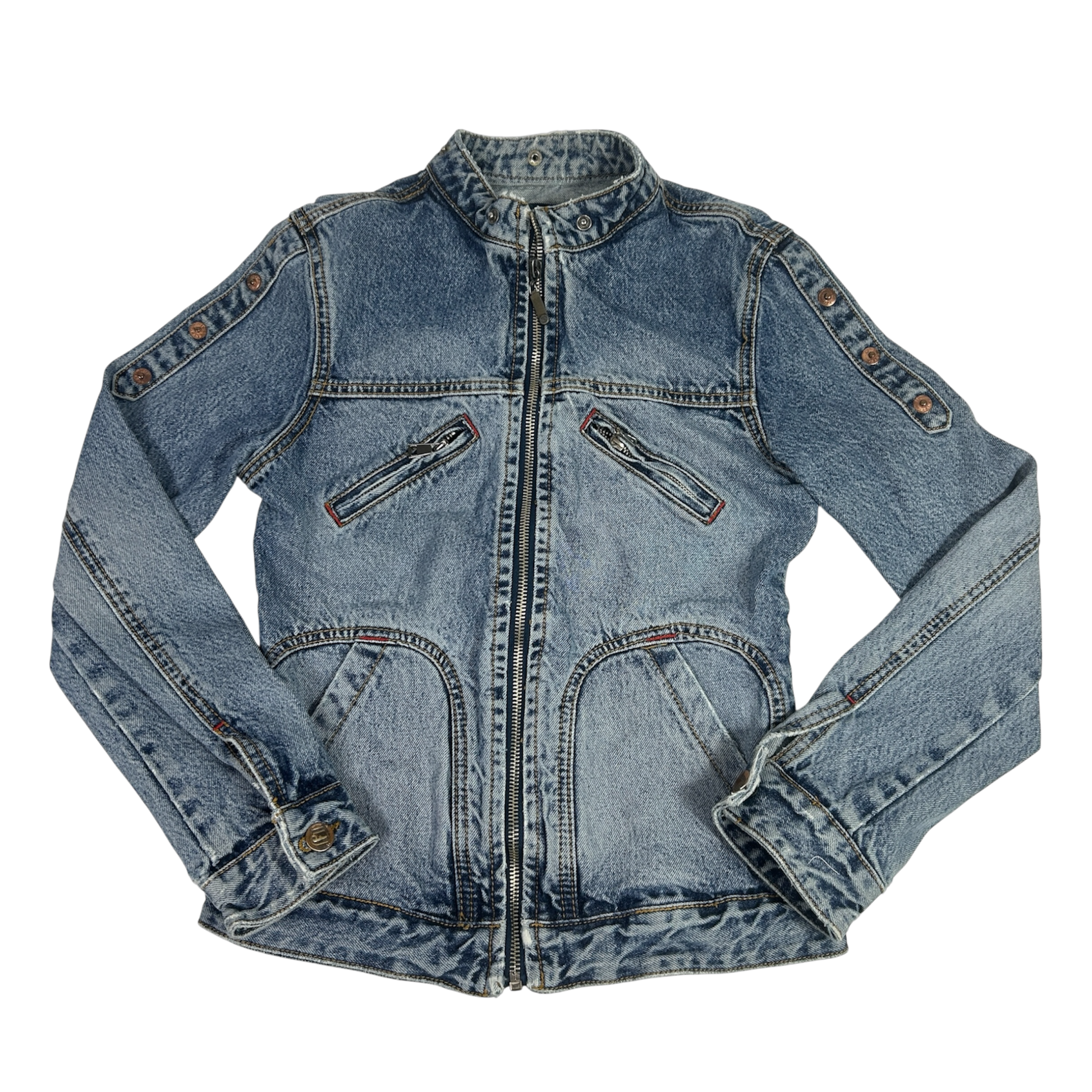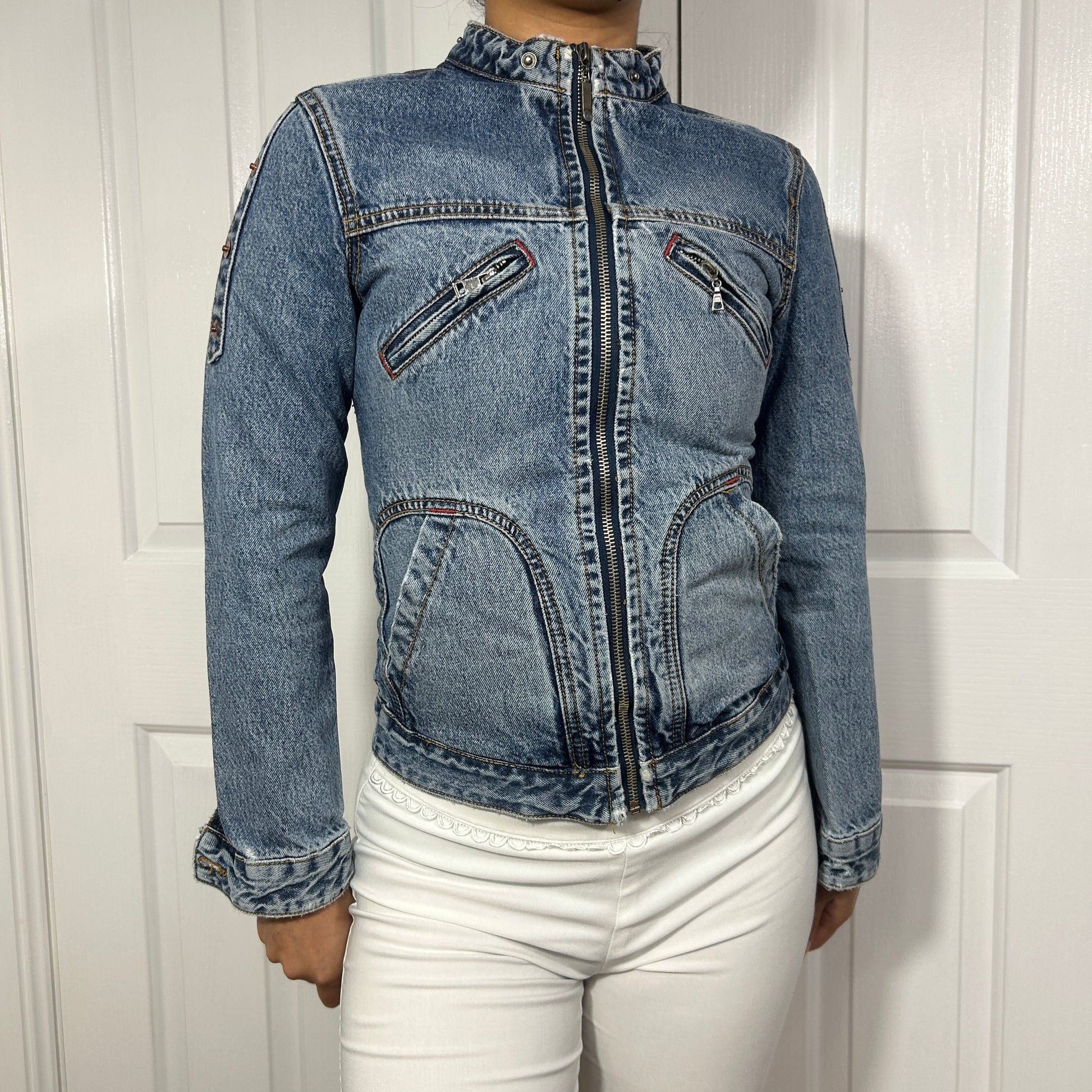 Stunning denim zip up jacket. Super cute zip details at the front of the jacket. Very fitted for a size S