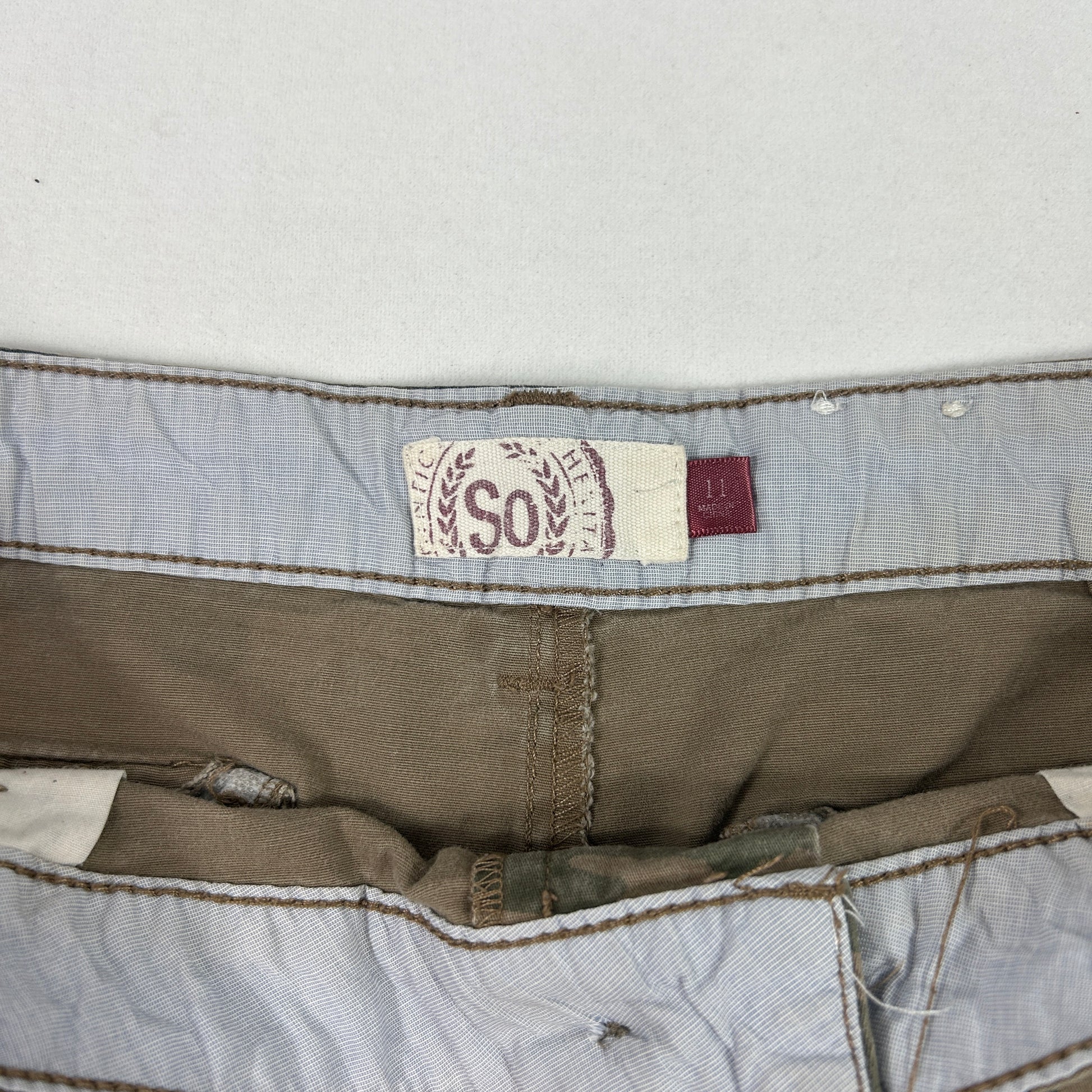 Vintage 00's green cargo camo low rise shorts.