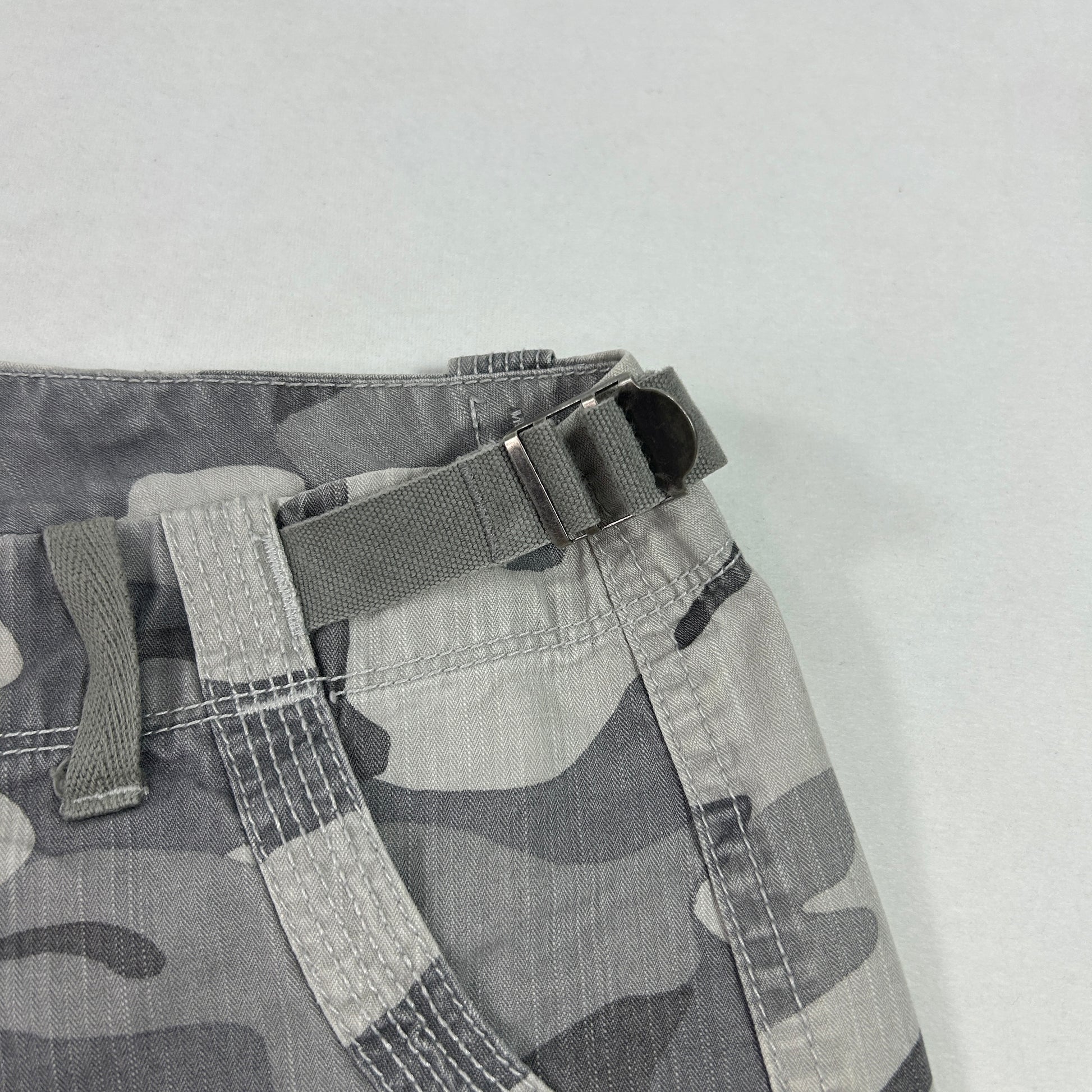 00's grey camo low rise shorts. Perfect for a festival.