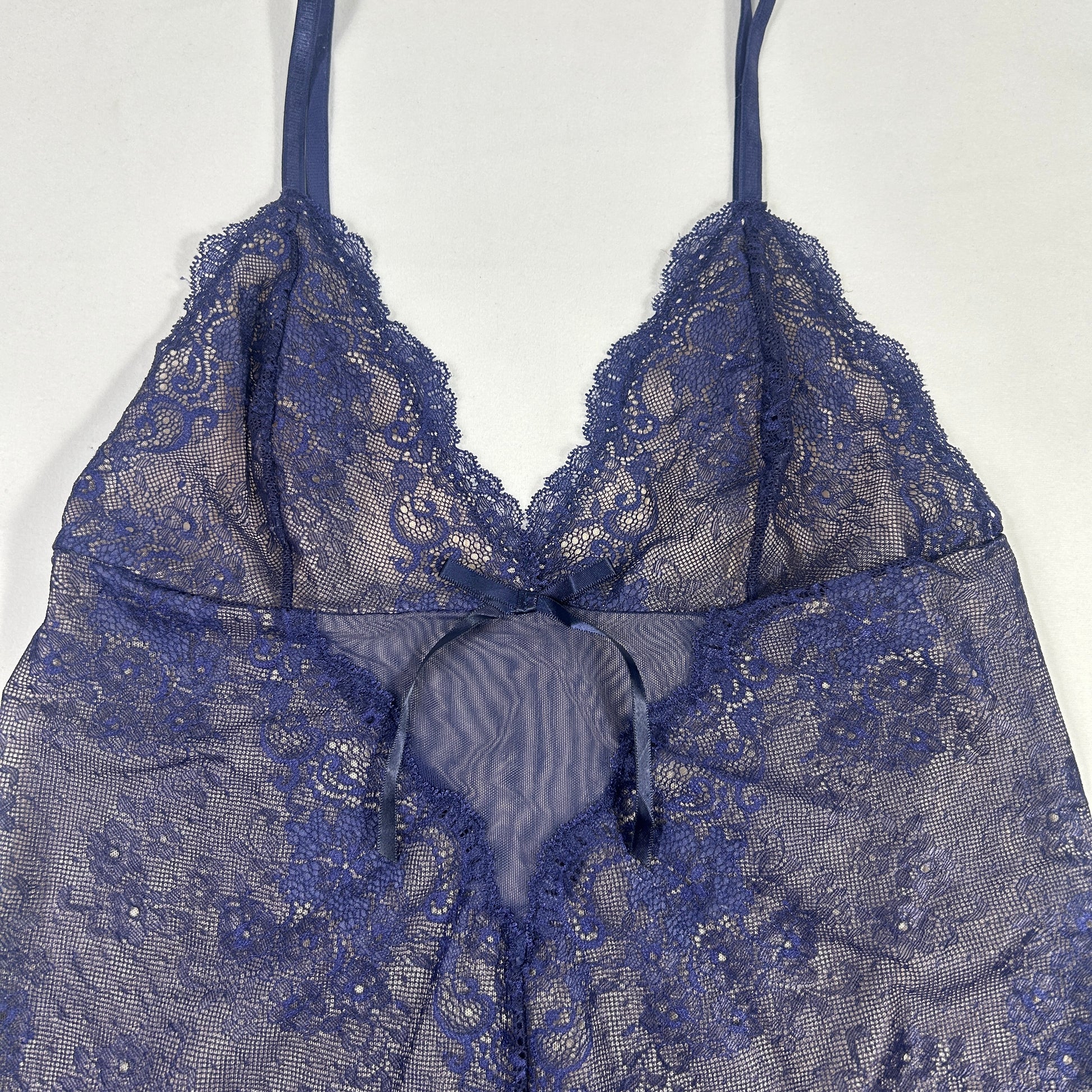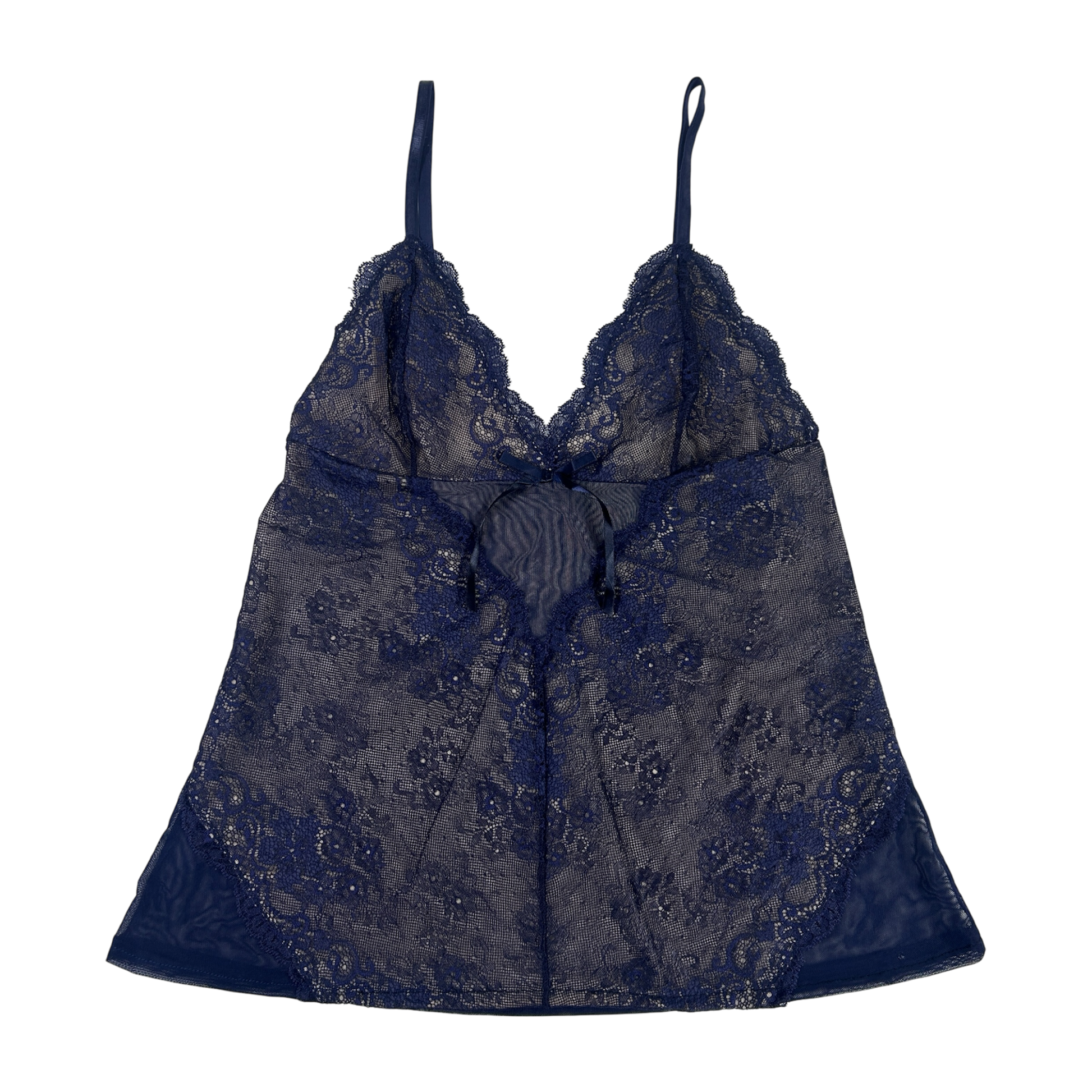 Super cute navy blue sheer floral camisole. Nude lining underneath but however the top is still slightly sheer. Adjustable straps