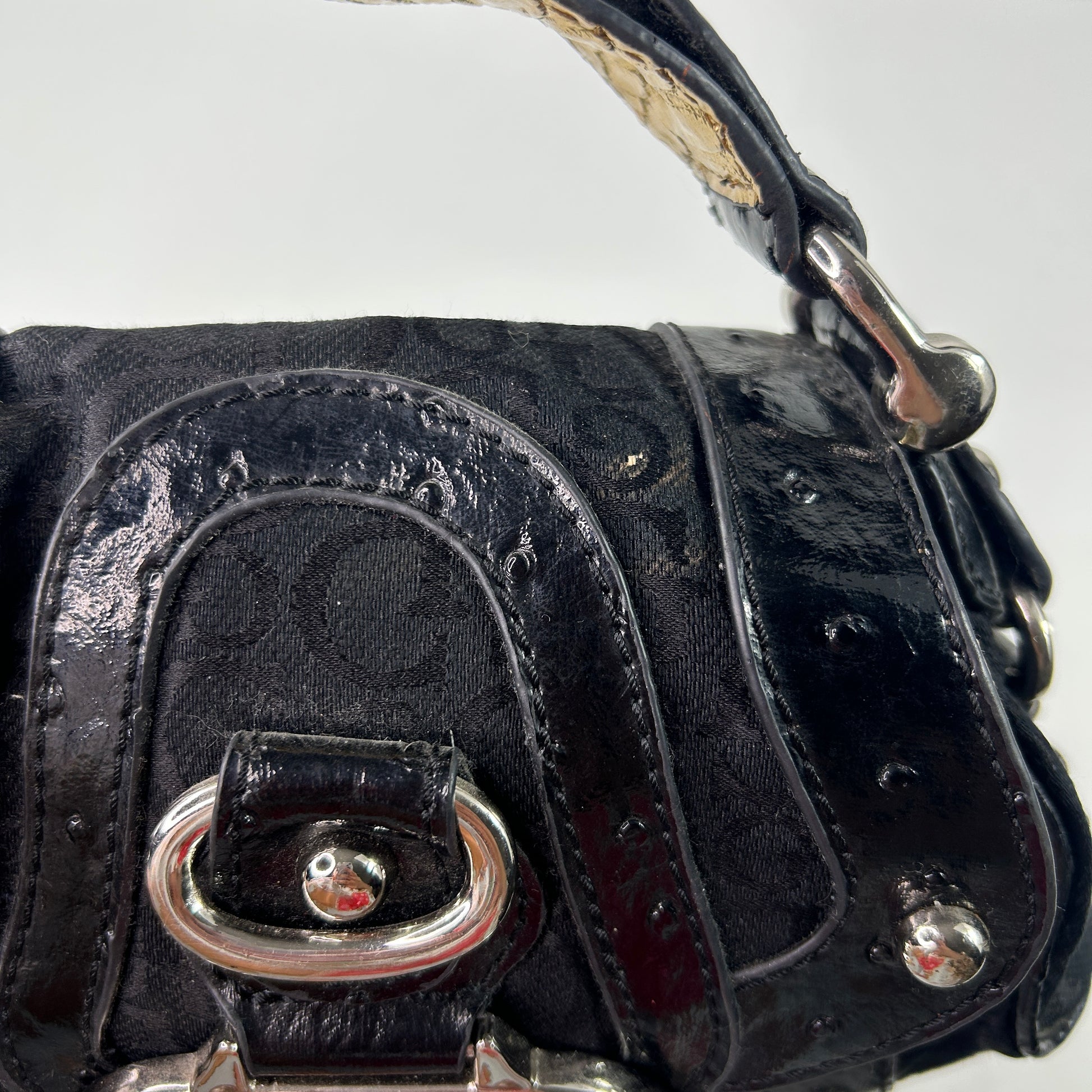 Insane small faux leather Guess shoulder bag with silver hardware. Slightly rounded shape. Very cleaned inside
