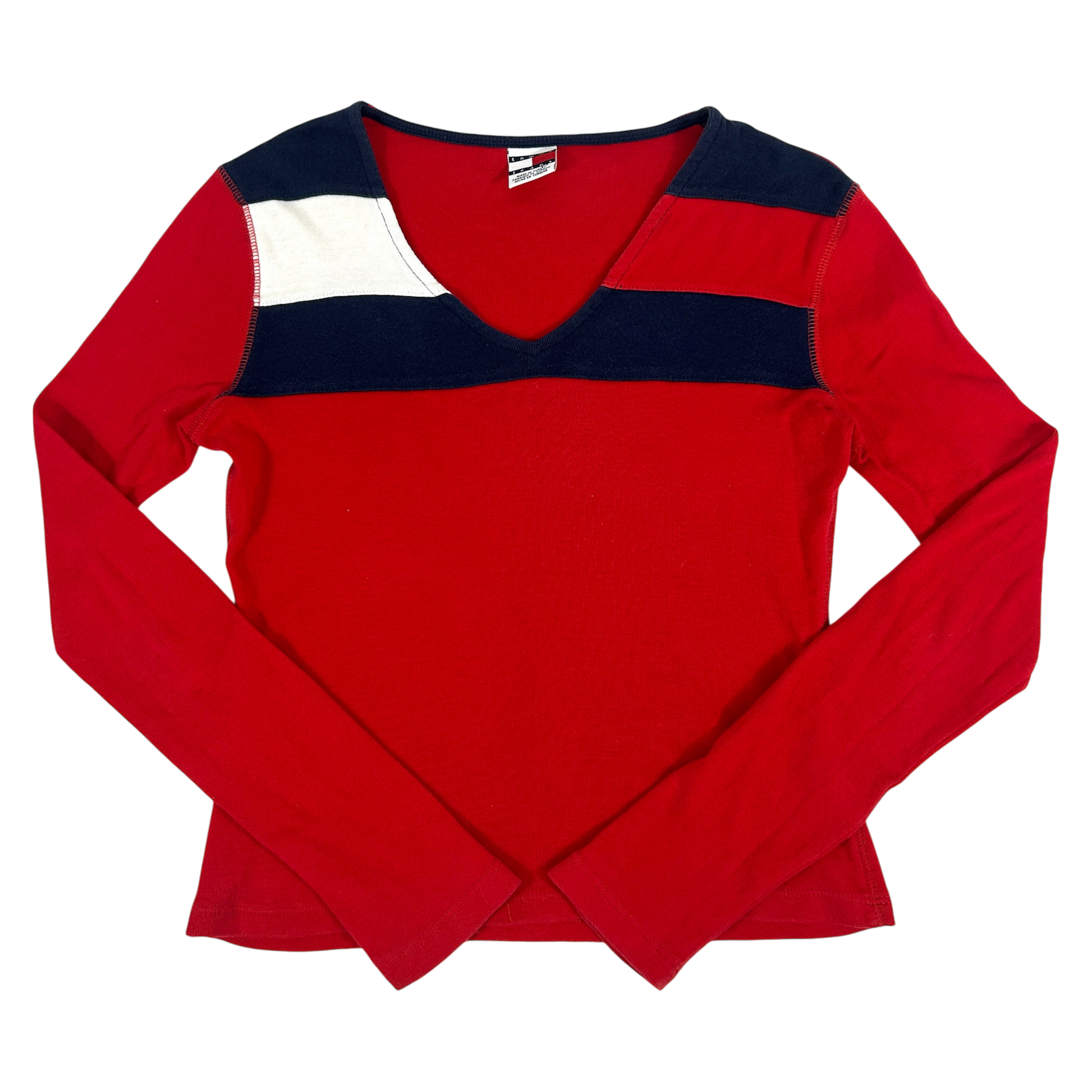 Vintage Tommy Girl Long Sleeve Top. Features Tommy Hilfiger signature colours. Slight V neck style.