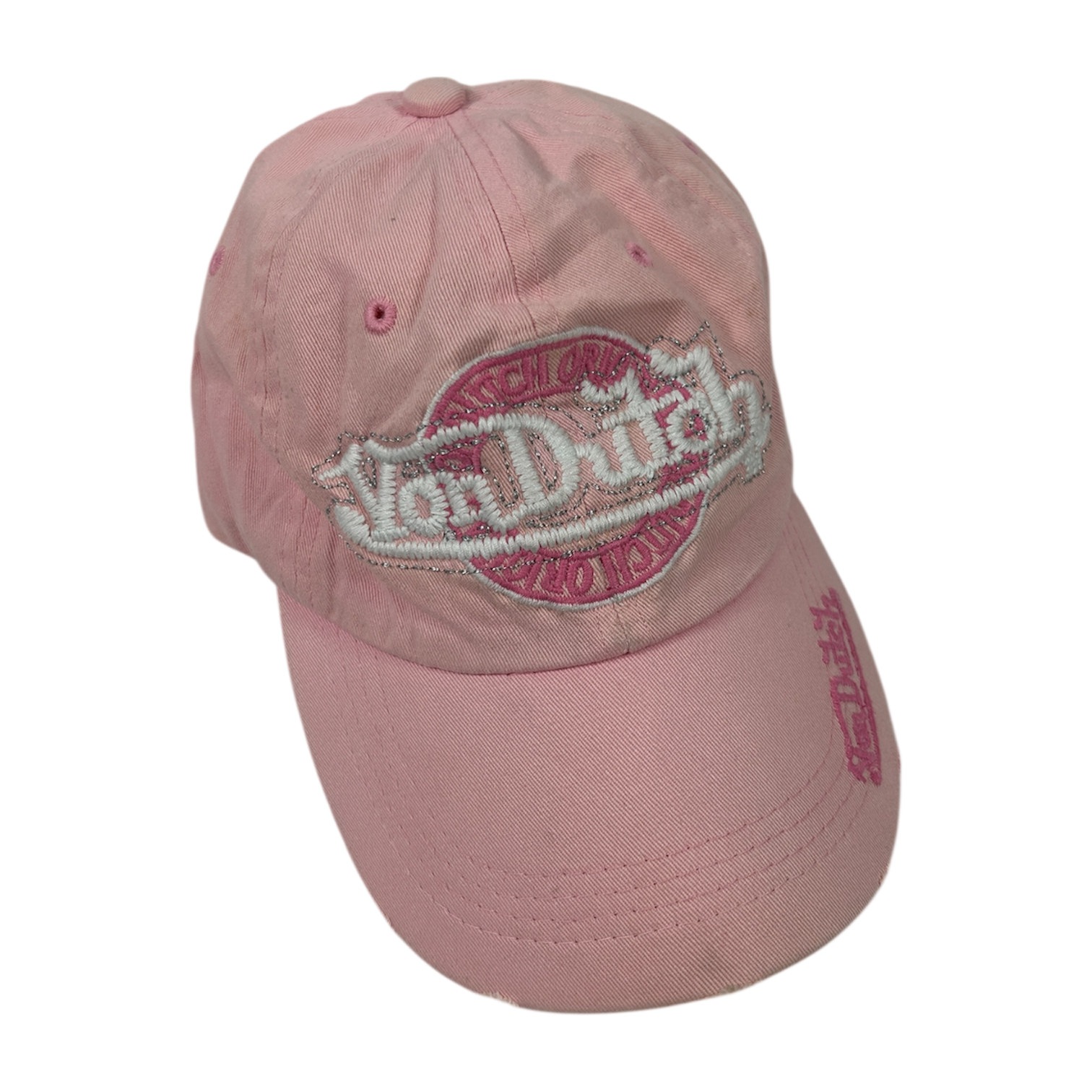 Super cool baby pink distressed VonDutch hat. Great to elevate your festival outfit or everyday wear. Adjustable back