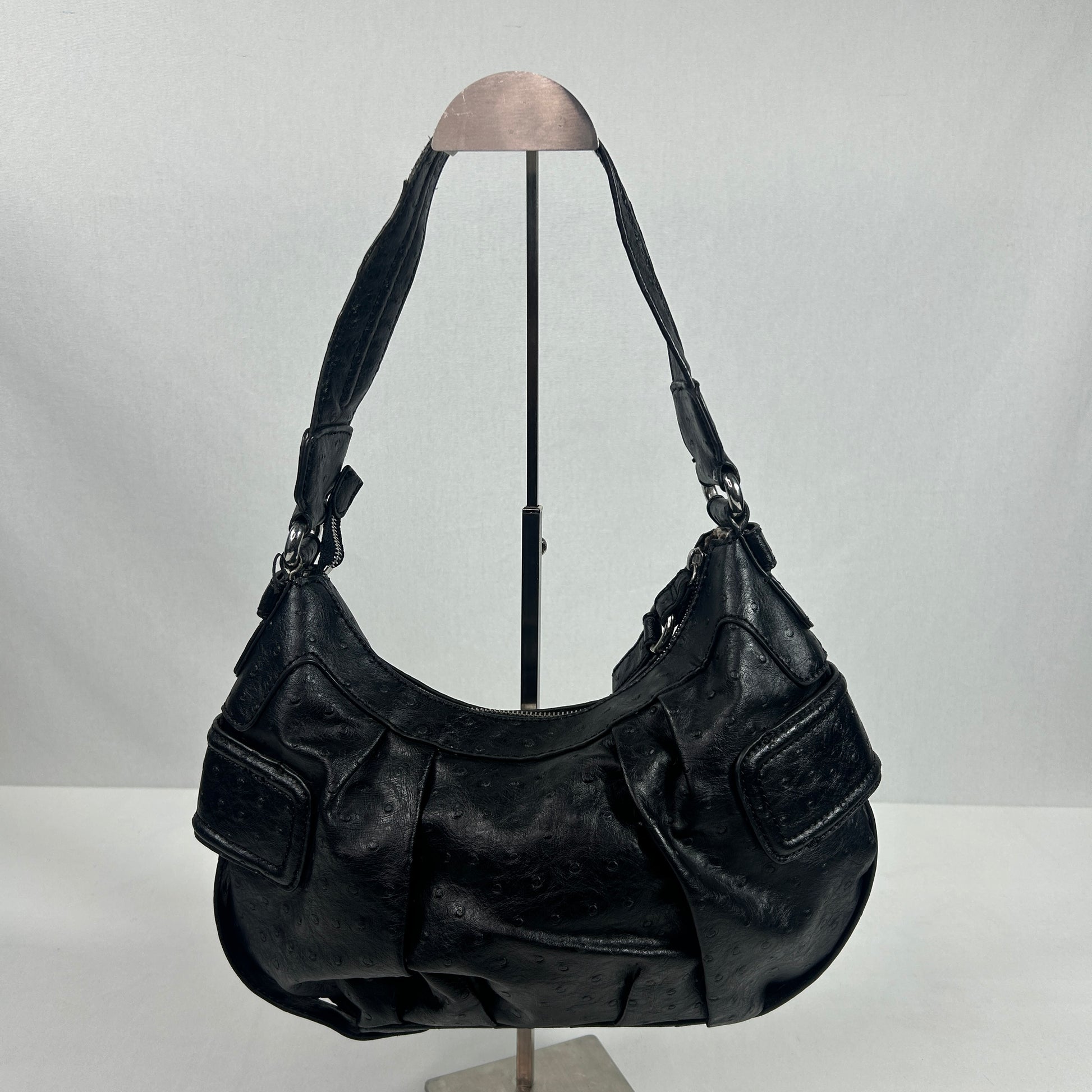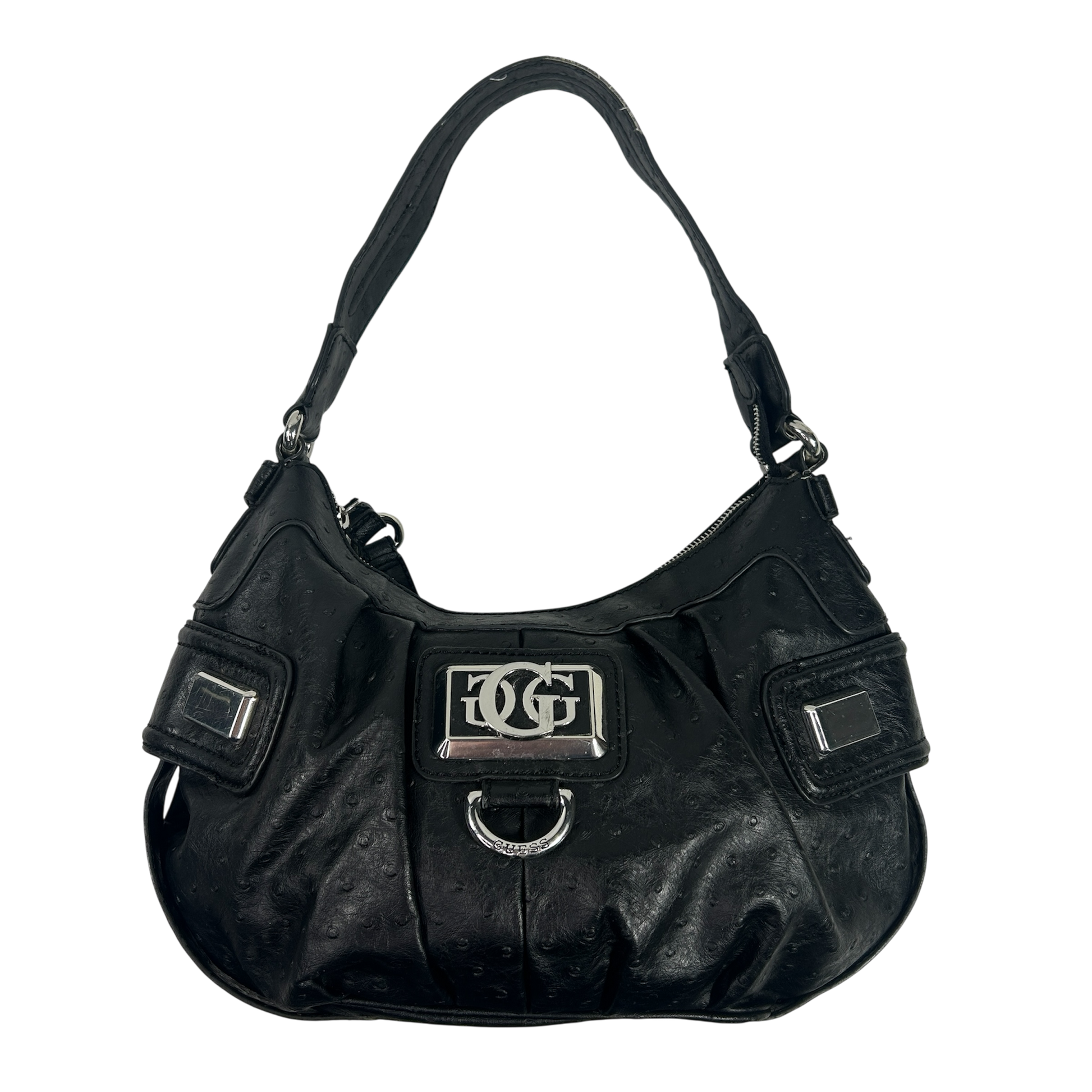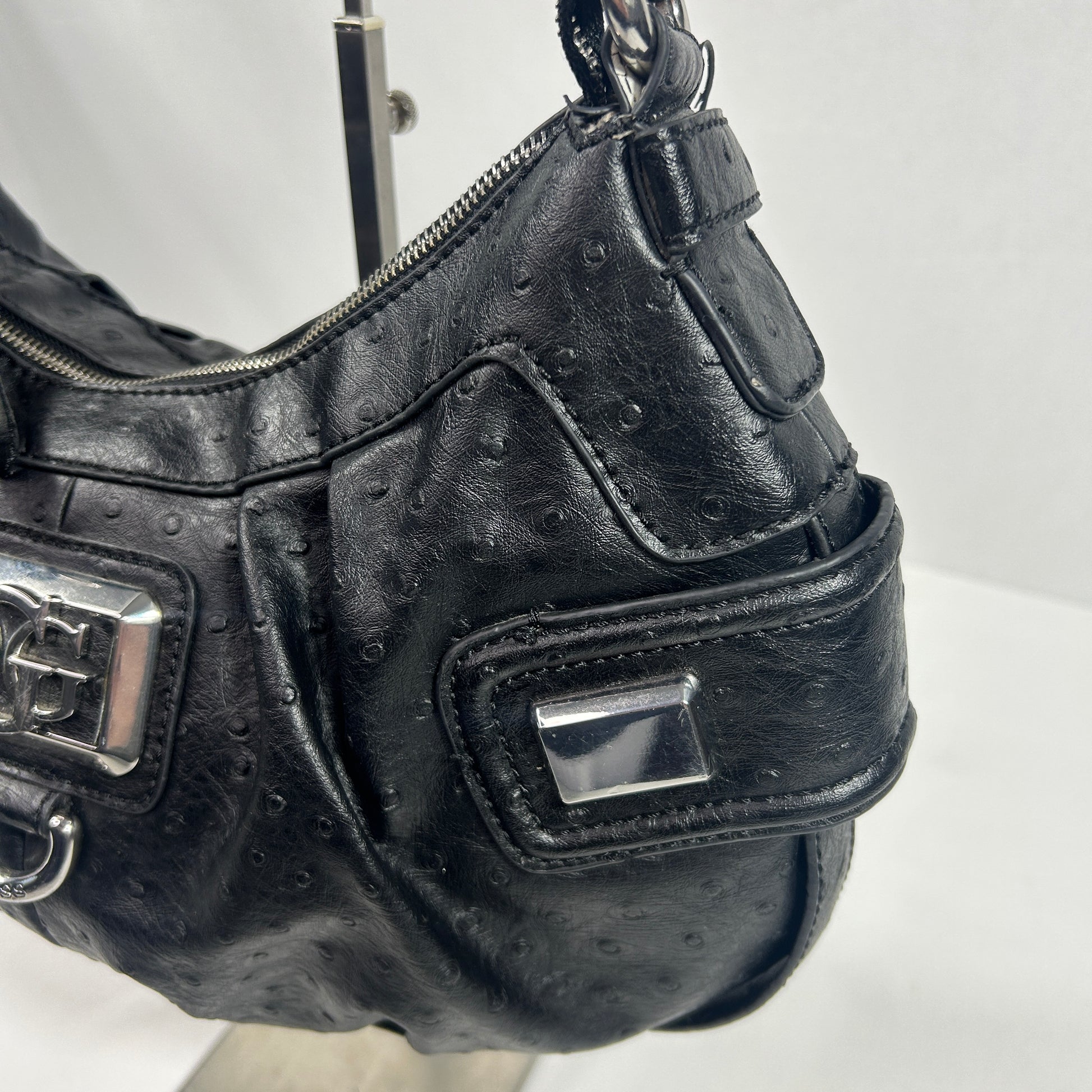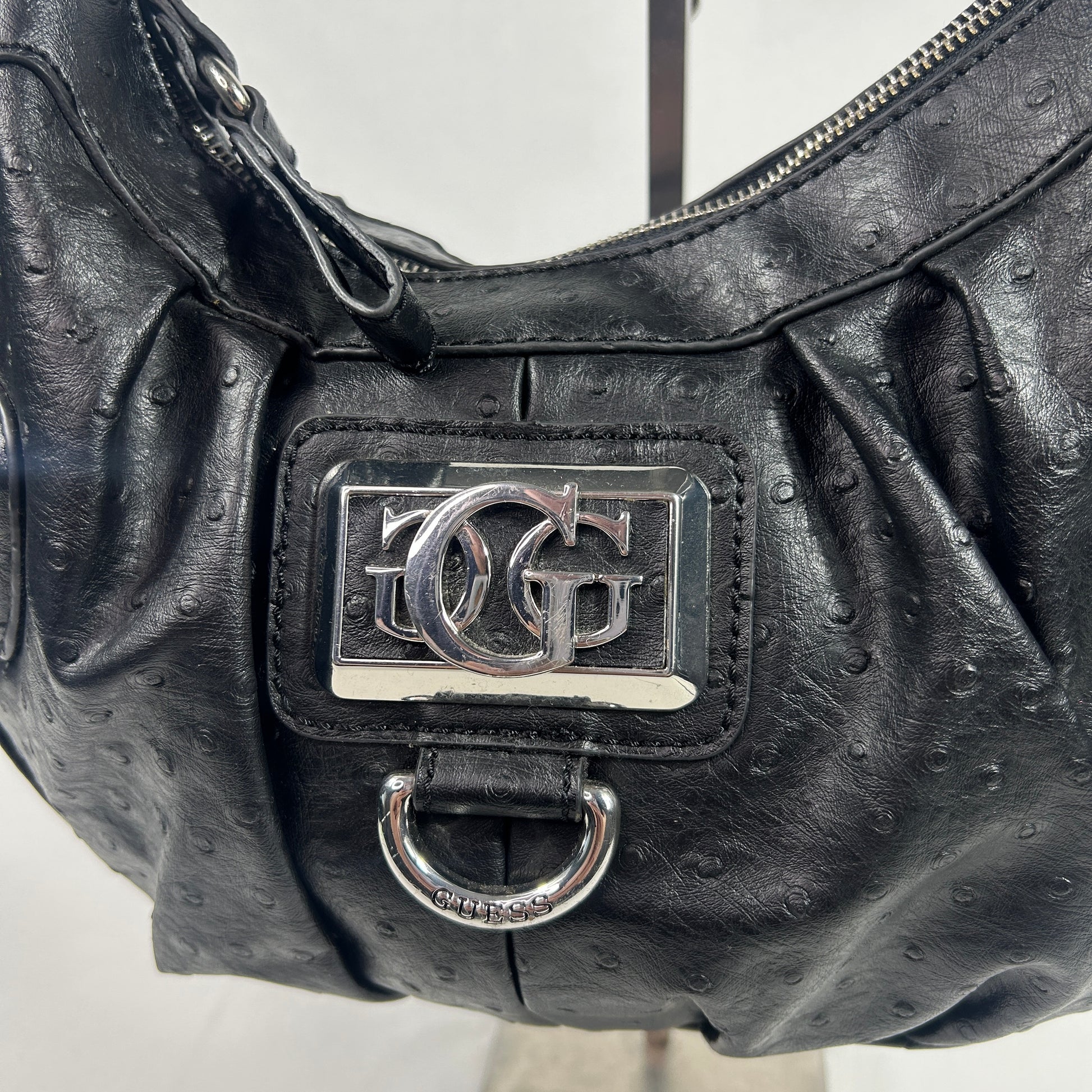 Insane faux leather Guess shoulder bag with silver hardware. Slightly rounded hobo silhouette, hobo style bag.