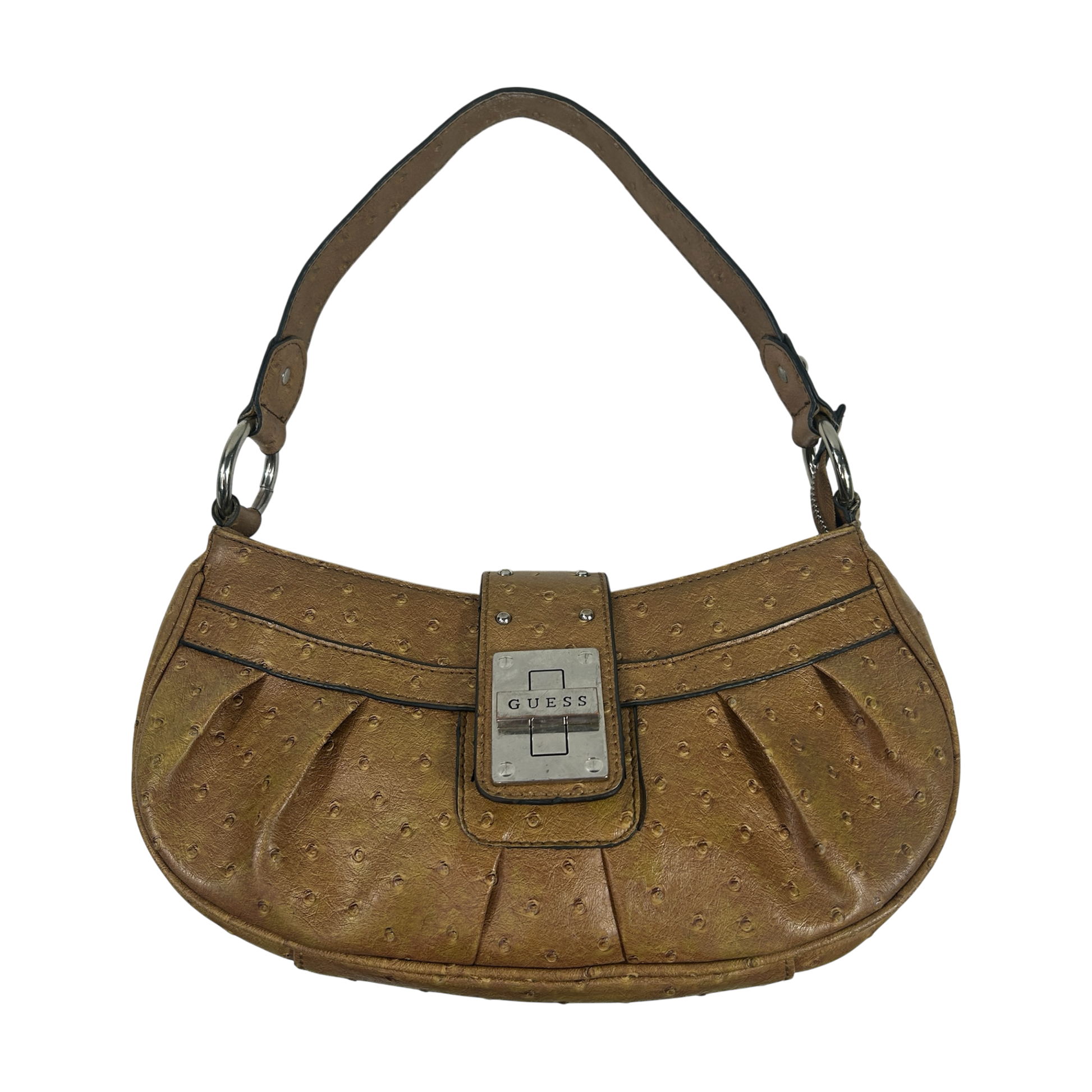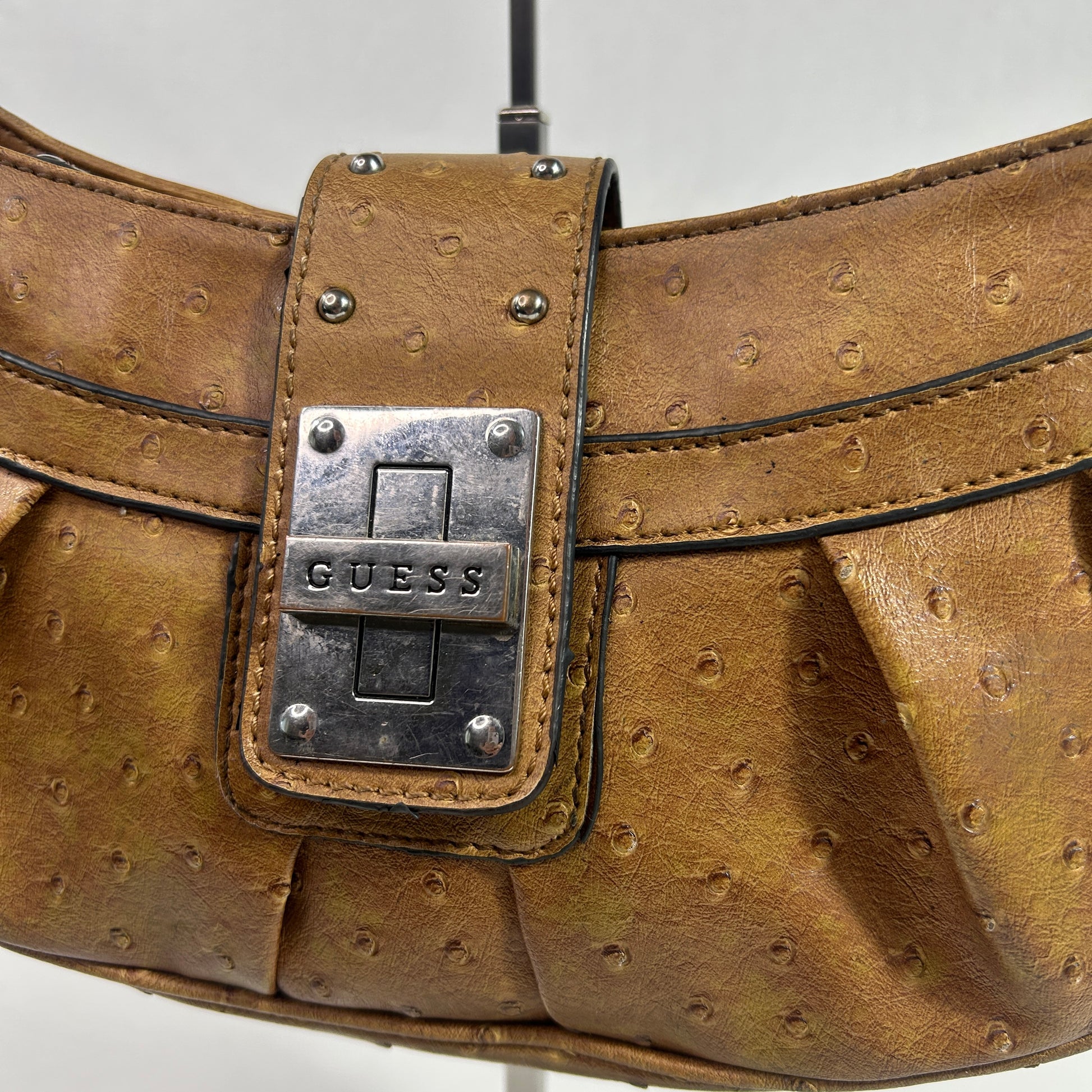 Vintage brown Guess shoulder bag. Faux leather with silver hardware. Small size. In good condition. Baguette style bag with magnetic closure and zip.